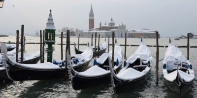 Non tantissima ma quanto basta per vedere le gondole e Piazza San Marco coperte di bianco