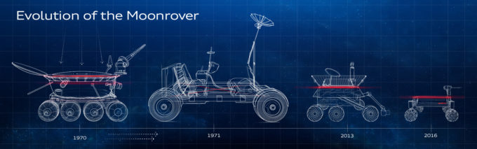 Lo sviluppo dei rover della Mission to the Moon ha avuto alti e bassi, fino a quando nel 2015 PTScientists ha annunciato un importante accordo di collaborazione con la casa automobilistica Audi, che ha fornito nuove risorse e conoscenze per la loro realizzazione. Il rover principale, quello più grande, è ora chiamato Audi Lunar Quattro: un chiaro riferimento sia al marchio dell’azienda, sia a uno dei suoi brand più famosi.