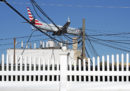 David Rothenberg fotografa quelli che atterrano all'aeroporto di LaGuardia, a New York, e che sembrano passare tra cavi elettrici e case