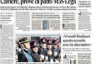 I giornali di oggi aprono tutti sulle ipotesi di alleanza fra i partiti per la formazione di una maggioranza che possa sostenere il governo, e mentre alcuni si occupano ancora di un possibile accordo fra Movimento 5 Stelle e Partito Democratico nonostante che quasi tutto il PD si sia pronunciato contro, per altri si starebbe muovendo qualcosa fra 5 Stelle e Lega, almeno per l’elezione dei presidenti delle Camere. La Stampa e il Sole 24 Ore aprono invece sulle preoccupazioni dell’Unione Europea sulla situazione politica italiana e sui possibili effetti sul debito pubblico, mentre i quotidiani sportivi celebrano la vittoria a Londra della Juventus contro il Tottenham, che qualifica la squadra italiana ai quarti di Champions League, tutti con lo stesso titolo.