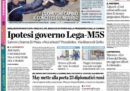 I giornali di oggi danno per probabile un accordo fra Lega e Movimento 5 Stelle per l’elezione dei presidenti di Camera e Senato, e forse anche per la formazione del nuovo governo, nonostante l’opposizione di Berlusconi a questa intesa (anche se Libero sostiene che ci sia l’appoggio di Berlusconi a questa ipotesi). Il Corriere della Sera apre invece sulla morte di Stephen Hawking, Avvenire titola sui dati sugli arrivi di migranti in Europa, e i giornali sportivi si occupano della vittoria della Juventus, che aumenta il vantaggio sul Napoli in testa alla classifica, sull’Atalanta nel recupero di campionato.