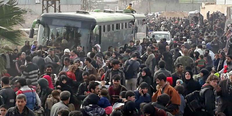 Ieri migliaia di civili hanno lasciato Ghouta orientale, l’unica area vicina a Damasco ancora sotto il controllo dei ribelli siriani ma da settimane attaccata intensamente dalle forze governative del presidente Bashar al Assad e i suoi alleati: stando alle informazioni disponibili, non era mai successo dall’inizio dell’offensiva governativa, cioè dal mese scorso, che così tante persone abbandonassero Ghouta orientale in un solo giorno. Le scene di lunghe file di civili, molti dei quali visibilmente feriti dai bombardamenti, sono state trasmesse dalla televisione di stato siriana.