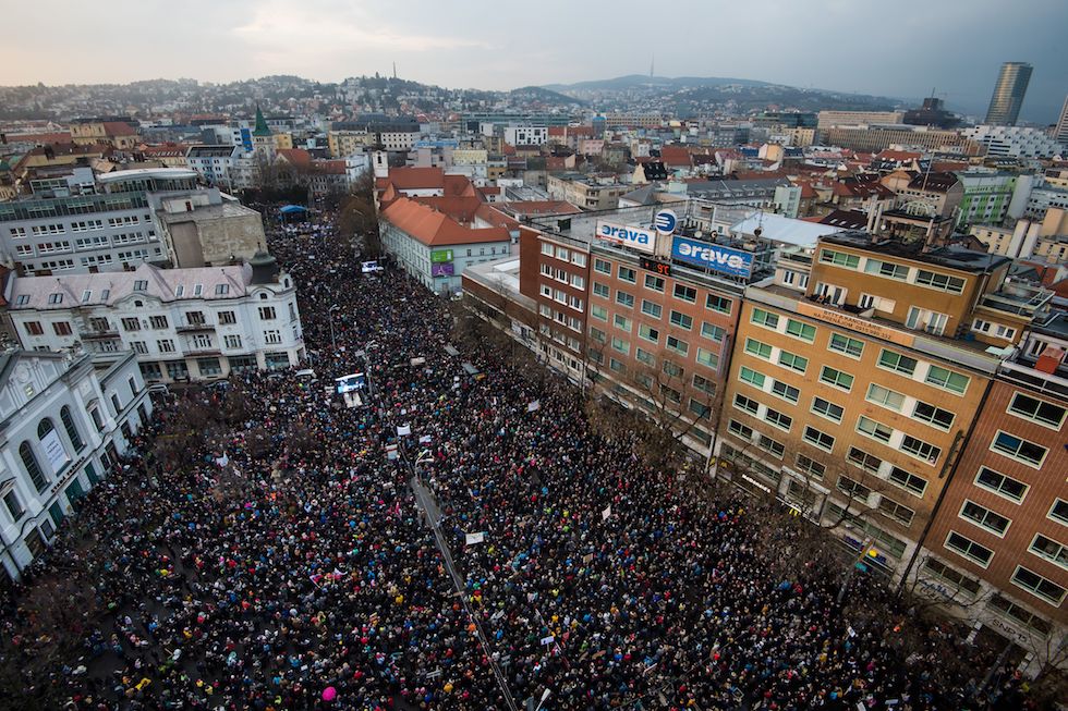 Migliaia di persone non si sono accontentate delle dimissioni del primo ministro Robert Fico, seguite all'omicidio del giornalista Ján Kuciak