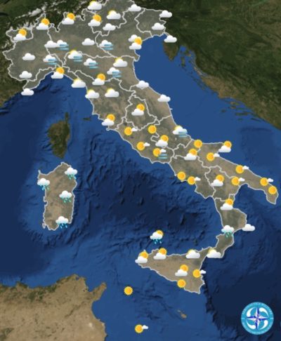 Di mattina pioverà poco al Sud, soloce in Sicilia, Campania e Puglia, ma nel pomeriggio le condizioni meteorologiche peggioreranno dappertutto, con temporali in gran parte delle regioni. Potrebbe nevicare un po’ nel Molise occidentale, sopra i 1.200 metri di altitudine.