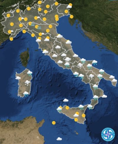 Per Sardegna, Umbria, Lazio centromeridionale e regioni adriatiche il meteo prevede molte nuvole. Pioverà un po’ nell’est della Sardegna, Marche e Abruzzo. Nevicherà sui rilievi abruzzesi sopra i 300-400 metri di altitudine. Nel resto del Centro Italia ci sarà cielo sereno o poco nuvoloso; verso sera su gran parte dell’Umbria, delle Marche e del Lazio la situazione dovrebbe migliorare.