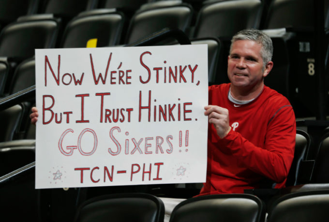 Ciononostante un rilevante “zoccolo duro” della tifoseria dei Sixers rimase dalla parte di Hinkie, visto che aveva offerto loro una vera strategia e li aveva avvertiti da subito che ci sarebbe stato da soffrire, sportivamente parlando. Quella situazione disperata era vista da molti come un’alternativa preferibile ad anni di squadre mediocri, basket mediocre e risultati mediocri. Tra loro c’era Michael Levin, conduttore di un popolare podcast sui Sixers, che contribuì a rendere famosa l’espressione «Trust the process», cioè «Credi nel processo», citata dalla guardia Tony Wroten in un’intervista con ESPN intitolata “Il piano di Philadelphia per vincere (sì, davvero)”. Stando a Wroten, era quello che diceva ai giocatori la dirigenza dopo ogni sconfitta.