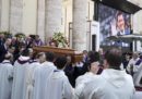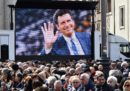 Oggi ci sono stati i funerali di Fabrizio Frizzi, uno dei conduttori più famosi della televisione italiana degli ultimi decenni, morto nella notte tra domenica e lunedì all’ospedale Sant’Andrea di Roma in seguito a una emorragia cerebrale. I funerali si sono svolti nella basilica di Santa Maria in Montesanto (nota anche con il nome di Chiesa degli artisti), in piazza del Popolo, dove è stato montato un maxi schermo per permettere di seguire la cerimonia alle centinaia di persone che si sono radunate fuori dalla chiesa e che hanno accolto il feretro con un lungo applauso. Frizzi sarà sepolto a Bassano Romano (Viterbo), nella cappella di famiglia.