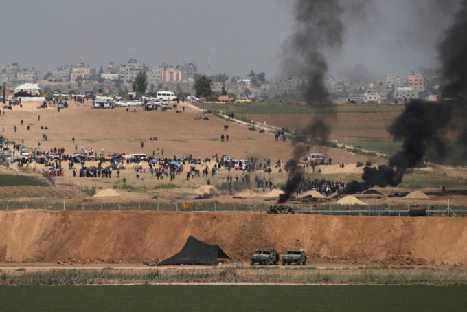 Secondo il ministero palestinese per la Salute, però, Murtaja era a 350 metri dal confine quando è stato colpito: anche lui è stato ucciso dai tiratori scelti, così come altri giornalisti sono stati feriti a loro volta mentre indossavano un giubbotto con la scritta “press”, a quanto ha detto il sindacato palestinese dei giornalisti. I manifestanti hanno provato a bruciare degli pneumatici per nascondersi dai tiratori dietro al fumo. L’esercito israeliano ha usato anche lacrimogeni e proiettili di gomma per rispondere alle proteste, e ha detto che il fumo è stato usato come copertura per provare a piazzare esplosivi lungo il confine. Secondo l’IDF, alle manifestazioni hanno partecipato circa 20mila persone.