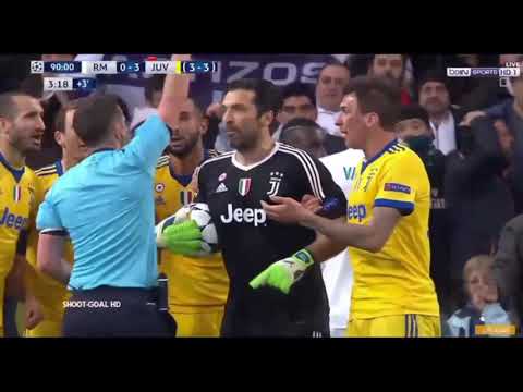 Quando mancavano solo 40 secondi alla fine dei minuti di recupero, la Juventus era quindi in vantaggio per 3-0: esattamente il risultato che le serviva per portare la partita ai supplementari, ai quali la Juventus sarebbe arrivata con ancora due cambi, e il Real nessuno. Ma quella che sarebbe probabilmente stata l’ultima azione del Real Madrid si è conclusa con un fallo del difensore Medhi Benatia ai danni di Lucas Vázquez in area di rigore. L’arbitro ha assegnato un calcio di rigore al Real Madrid e pochi istanti dopo ha espulso Buffon per le proteste eccessive contro la sua decisione. Per la Juventus, in quel momento, la partita era stata una delle più sorprendenti e convincenti degli ultimi anni, e un gol del Real Madrid avrebbe voluto dire l’eliminazione dal torneo: torneo che peraltro proprio Buffon – storico portiere della Juventus e della nazionale italiana – non ha mai vinto e a cui teneva in modo particolare. La Juventus ha perso nella sua storia sette finali di Champions League, l’ultima l’anno passato.