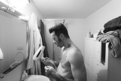Nelle foto in mostra ci sono moltissimi ritratti – perlopiù in bianco e nero, che Mirelli privilegia e abbandona solo se sostituisce con colori forti e saturi – scattati in situazioni più o meno intime: non solo i concerti e le mani di è che nel pubblico, ma il momento in cui si torna nel camerino e ci si butta addosso un asciugamano; quando si lavora in sala di registrazione o si mangia qualcosa con il resto del gruppo.
