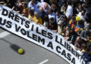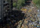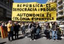 A Barcellona più di 300mila persone – secondo la stima della polizia – hanno partecipato a una manifestazione per chiedere la liberazione o il rimpatrio dei sedici leader politici catalani che si trovano in prigione o all’estero dallo scorso ottobre, dopo il referendum sull’indipendenza della Catalogna e la successiva dichiarazione unilaterale di indipendenza.