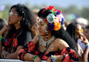 Nonostante sia stato il momento culminante del festival, non è stato l’unico rilevante: hanno cantato e si sono infatti visti alcuni dei musicisti più significativi e alla moda del momento e non solo: The Weeknd, St Vincent, SZA, David Byrne, Rihanna e Nile Rodgers. Se non vi intendete di musica, vale comunque la pena sfogliare le foto per farsi un’idea dell’atmosfera: colorata, psichedelica, indie, con tanti cliché – coroncine di fiori, occhialoni a forma di cuore, capelli dalle tinte arcobaleno – e installazioni artistiche sorprendenti, come quella dell’italiano Edoardo Tresoldi, che vi faranno comunque venire un po’ voglia di essere là.