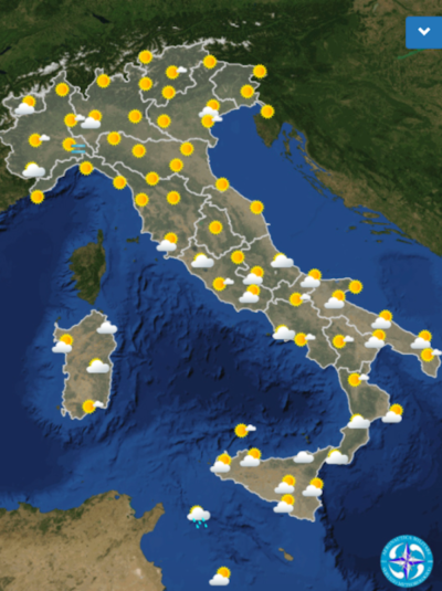 Nel pomeriggio è un tripudio di soli su quasi tutta Italia, con giusto qualche simbolo corrispondente a possibili piogge non intense su Basilicata, Sardegna e Sicilia. Nella sera niente piogge e pochissime nuvole su tutta Italia, compresa Pantelleria.