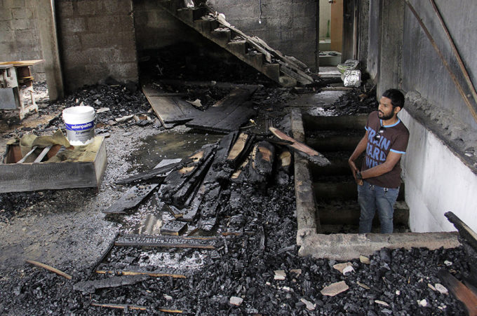 Un uomo in una casa bruciata dopo la rivolta anti-musulmana scoppiata a Digana, Kandy, 7 marzo 2018 (STR/AFP/Getty Images)
