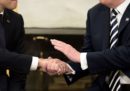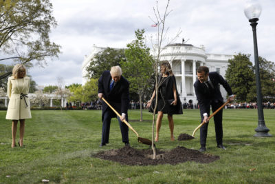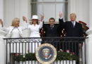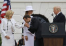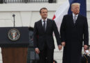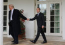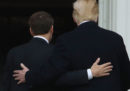 Il presidente della Francia Emmanuel Macron è in visita di stato negli Stati Uniti ed è stato ricevuto alla Casa Bianca insieme a sua moglie, Brigitte Macron, dal presidente statunitense Donald Trump, da sua moglie Melania e da alcuni dei membri del suo governo. Entrambi i presidenti hanno tenuto dei brevi discorsi prima dell’inizio del loro incontro vero e proprio; poi ci sono state le foto di rito, con parecchio contatto fisico e strette di mano, baci e abbracci tra i due presidenti, oltre a un po’ di giardinaggio.