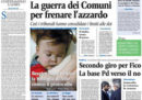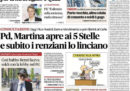 Quasi tutti i giornali di oggi aprono sulla trattativa per la formazione del nuovo governo fra Partito Democratico e Movimento 5 Stelle per la quale il presidente della Repubblica Mattarella ha affidato l’incarico al presidente della Camera Roberto Fico, con le divisioni nel PD fra favorevoli e contrari all’accordo. Il Messaggero, il Tempo, Leggo e i giornali sportivi titolano invece sull’aggressione a un tifoso irlandese da parte di un gruppo di romanisti a Liverpool prima della semifinale di Champions League di martedì.