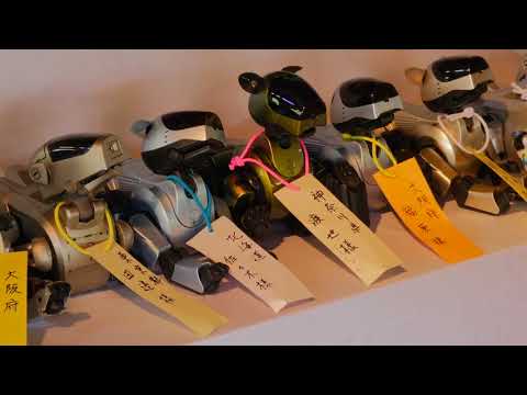 114 cani-robot Aibo di Sony, danneggiati e non più riparabili, sono stati allineati al tempio – ciascuno con un’etichetta con la loro provenienza e il nome del proprietario – mentre un sacerdote e alcuni proprietari dedicavano loro una sorta di cerimonia funebre.