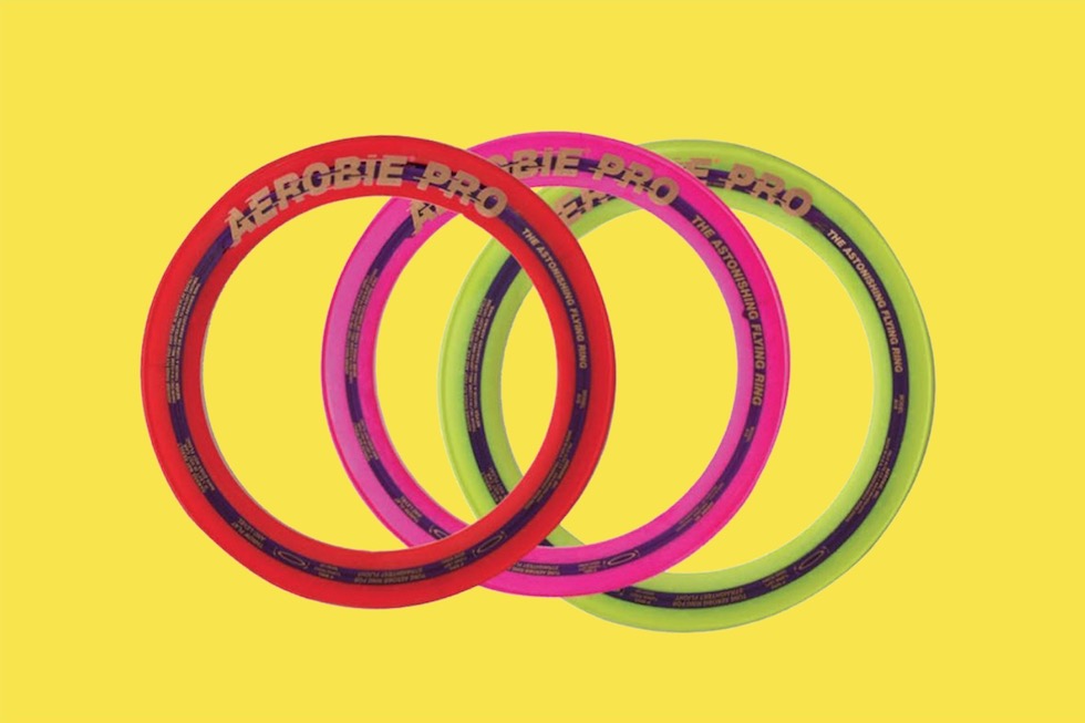 L’Aerobie Pro non è un vero e proprio frisbee (per quanto anche questa parola non sia del tutto corretta, dato che “Frisbee” è il nome di un particolare frisbee prodotto da una specifica azienda, la Wham-O, stesso discorso del velcro) ma una specie di anello di plastica flessibile. Per i cani è adatto perché è più facile da afferrare con la bocca. Per quanto riguarda l’utilizzo delle persone adulte, Jenni Gritters dice che è molto facile fare tiri anche molto lunghi con questo tipo di frisbee, ma è più difficile capire che direzione prenderà una volta lanciato e per questo è più difficile da prendere: è bene usarlo in spazi aperti molto ampi. Costa 14 euro.