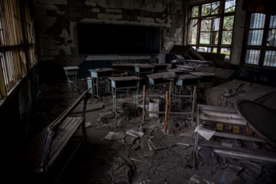 La scuola media Xuankou a Yingxiu, trasformata in memoriale per i morti nel terremoto fotografata il 21 aprile 2018 (JOHANNES EISELE/AFP/Getty Images)
