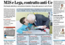 I titoli di apertura dei quotidiani di oggi si occupano delle trattative per la formazione del nuovo governo fra Lega e Movimento 5 Stelle e si concentrano su due aspetti: la preoccupazione dell’Unione Europea per il rispetto del patto di stabilità e per le politiche sull’immigrazione, e la pubblicazione di una bozza del contratto di governo fra i due partiti, che però conterrebbe anche elementi già accantonati nella trattativa.