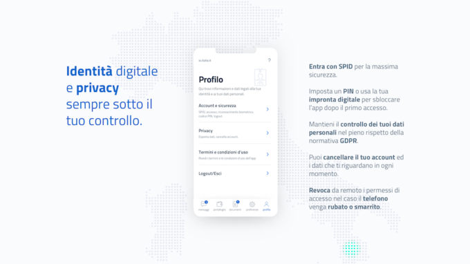 Per potere utilizzare IO sarà necessario uno SPID (Sistema Pubblico di Identità Digitale), la soluzione adottata dalla pubblica amministrazione per assicurarsi che ogni account sia collegato a una sola persona fisica e che sia effettivamente chi dichiara di essere. Lo SPID ha già contribuito a semplificare i rapporti digitali con la pubblica amministrazione e a migliorare la sicurezza per gli utenti: può essere richiesto partendo da qui. L’app consentirà inoltre di impostare un PIN o il riconoscimento dell’impronta digitale (sugli smartphone compatibili) per rendere ancora più rapido l’accesso ai servizi di IO.