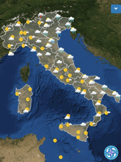 Se vi trovate nella metà dell’Italia a Ovest, dal Nord Ovest alla costa tirrenica alle isole, domani dovreste trovare bel tempo, per tutto il giorno. È a Est che ci saranno più nuvole e temporali: dovrebbe piovere nel Triveneto, in Romagna e in Puglia, principalmente in mattinata e nel pomeriggio. Nel Nord-Ovest le nuvole dovrebbero addensarsi nel pomeriggio, con una tendenza opposta a quella del Centro Italia, dove la giornata andrà rasserenandosi. Nel Sud, dopo qualche piccolo temporale e annuvolamento, verso sera dovrebbe tornare il bel tempo.