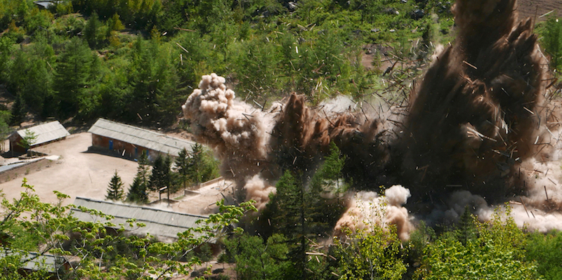La giornata è iniziata con un evento unico in Corea del Nord: una ventina di giornalisti provenienti da Russia, Cina, Corea del Sud, Regno Unito e Giappone hanno assistito alla distruzione tramite esplosioni controllate del sito nucleare di Punggye-ri, in un’area remota nel nord-est del paese. Nel corso degli anni a Punggye-ri erano stati fatti diversi test nucleari: nell’ultimo, condotto lo scorso settembre, era stata testata una bomba a idrogeno, la cui esplosione aveva provocato un forte terremoto e forse un danno irreparabile ad una parte del sito.