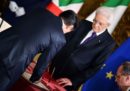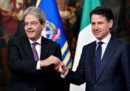 Oggi c’è stato al Quirinale il giuramento del governo guidato dal nuovo presidente del Consiglio Giuseppe Conte (qui trovate le storie e le facce dei 18 ministri) davanti al presidente della Repubblica Sergio Mattarella. La cerimonia del giuramento è il momento formale che sancisce l’entrata in carica di un governo e la fine di quello precedente. Dopo un brindisi in privato al Quirinale insieme alla squadra di ministri, Giuseppe Conte è andato a Palazzo Chighi, sede del governo, per il passaggio di consegne con il presidente del Consiglio uscente Paolo Gentiloni, che era ancora formalmente in carica per il disbrigo degli affari correnti. Il prossimo passaggio sarà il voto di fiducia del Parlamento, che è previsto per lunedì.
