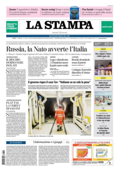 Per tutti i giornali di oggi l’apertura è sempre dedicata al nuovo governo, con il voto di fiducia superato anche alla Camera, la reazione negativa del segretario generale della NATO all’ipotesi di cancellare le sanzioni alla Russia annunciata dal presidente del Consiglio Conte, gli annunci del ministro dell’Interno Salvini sull’immigrazione, e la proposta di superare il limite del 3% per il rapporto fra deficit e PIL. Il Manifesto fa una scelta diversa, occupandosi del nuovo governo spagnolo con una presenza maggioritaria di donne.