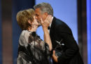Il 7 giugno George Clooney ha ricevuto a Los Angeles l’AFI Life Achievement Award, un importante premio annuale che l’American Film Institute consegna a una personalità del cinema o della televisione che abbia significativamente contribuito all’arricchimento della cultura americana. La cerimonia di consegna si è tenuta al Dolby Theatre, noto teatro che ospita la notte degli Oscar. C’erano, tra gli altri, la moglie di Clooney, Amal, Bill Murray, Jennifer Aniston, Miley Cyrus, Jimmy Kimmel e Diane Keaton, che vinse il premio un anno fa.