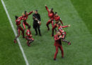 A Mosca sono iniziati i Mondiali di calcio, l’evento sportivo più atteso dell’anno. Nella partita inaugurale allo stadio Luzhniki la Russia, nazionale ospitante e qualificata di diritto alla fase finale, ha esordito battendo con un netto 5-0 l’Arabia Saudita: è la vittoria più larga in una partita inaugurale nella storia dei Mondiali. La Russia ha dato una buona impressione ma lo scarto così ampio nel risultato è stato possibile anche per il basso livello della nazionale saudita, mai stata in partita e senza qualità su cui fare affidamento. La partita è stata preceduta dalla tradizionale cerimonia, che si è svolta tra coreografie, balletti e l’esibizione di Robbie Williams. Nel corso della cerimonia, l’ex portiere della Spagna Iker Casillas, campione del mondo nel 2010, ha portato in campo la Coppa del Mondo che verrà assegnata nella finale in programma il prossimo 15 luglio al Luzhniki.