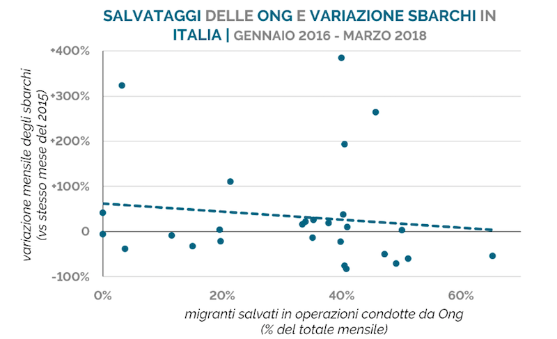 È un’ipotesi che circola da anni, e ripresa anche dal direttore di Frontex, l’agenzia europea per il controllo delle frontiere. In realtà non è mai stata dimostrata una correlazione fra la presenza delle navi delle ong al largo della Libia e un aumento degli arrivi via mare. Secondo uno studio dell’ISPI, a un aumento dei migranti soccorsi dalle ong – che nel picco delle loro attività compivano circa il 65 per cento delle operazioni – non è corrisposto un aumento dei barconi partiti dalla Libia.