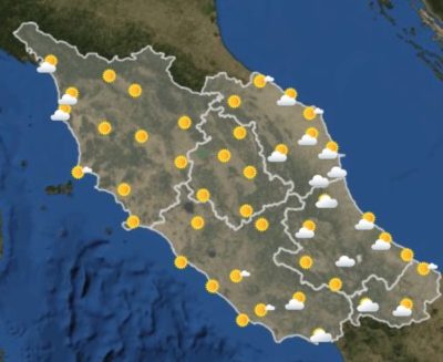 In generale il cielo sarà sereno o poco nuvoloso anche nel centro Italia, fatta eccezione per il nord della Toscana e per le zone interne tra Abruzzo e sud del Lazio, dove potrebbero esserci isolati piovaschi nelle ore più calde della giornata.