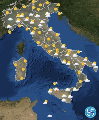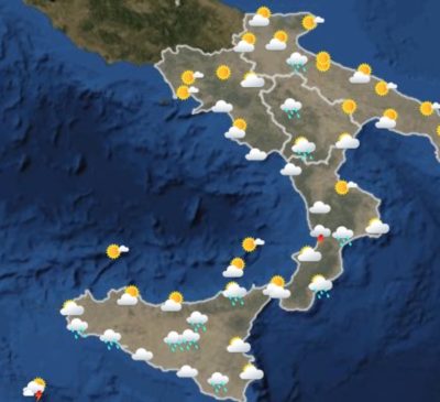 Il cielo sarà abbastanza nuvoloso su Campania meridionale, Basilicata, Calabria e Sicilia, dove potrebbero anche esserci dei temporali; meno verso sera. Nel resto del sud ci sarà bel tempo.