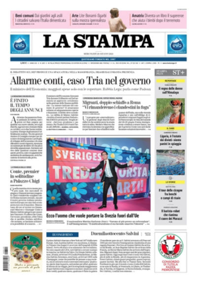 Ci sono notizie diverse in apertura sui giornali di oggi: molti si occupano ancora della proposta del ministro dell’Interno Salvini di schedare i rom presenti in Italia, diventata “non una priorità” ieri sera dopo le proteste di molti partiti compresi gli alleati di governo del Movimento 5 Stelle. La Stampa apre invece sul Documento di Economia e Finanza per il quale il ministro dell’Economia Tria sembra voler ripensare alle proposte contenute nel contratto di governo per la mancanza della copertura finanziaria, il Corriere della Sera, Avvenire e il Messaggero titolano sulla gestione dei migranti nell’Unione Europea, e l’Osservatore Romano commenta le politiche dell’amministrazione Trump che prevedono la separazione dei figli degli immigrati irregolari dai loro genitori.
