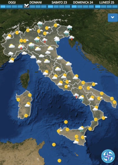Le previsioni del tempo di domani, venerdì 22 giugno
