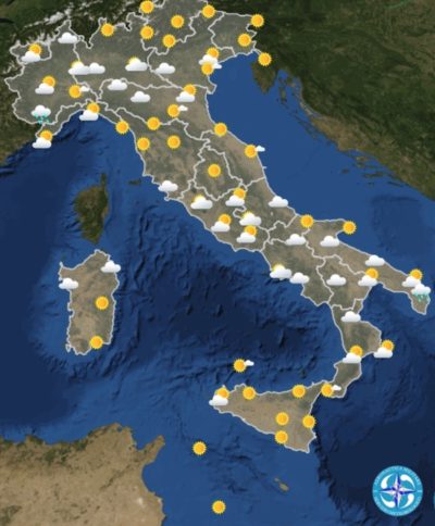 Al mattino il cielo sarà un po’ nuvoloso o velato su quasi tutto il nord, molto nuvoloso su Piemonte, Prealpi e Appennino dove potrebbe anche piovere localmente. Dal pomeriggio la situazione migliorerà in gran parte del nord, tranne il Triveneto e le Alpi occidentali dove continueranno a esserci piogge o temporali locali. In serata il cielo sarà più velato nelle regioni occidentali.