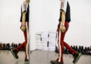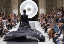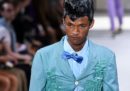 Il debutto di Abloh era il più atteso di Parigi ma non l’unico: anche Kim Jones, che dal 2011 al 2018 è stato direttore artistico di Louis Vuitton di cui ha reinventato lo stile, ha presentato la sua prima collezione maschile per Dior, ribattezzato da Dior Homme a Dior Men. Ha sfilato nel quartier generale della Guardia repubblicana, dove ha piazzato un pupazzo gigante ricoperto di rose e realizzato dall’artista Kaws: rappresentava il fondatore Christian Dior con in mano la boccetta del profumo Miss Dior e il suo cane Bobby. Anche qui c’erano tantissime celebrità, da Kate Moss a Lenny Kravitz, e hanno sfilato elegantissimi completi in bianco immacolato e blu pastello, portati con sneaker bianche. Jones ha lavorato soprattutto recuperando e reinventando gli archivi di Dior, con omaggi ai predecessori e soprattutto a John Galliano. Ha anche reinventato l’ape, il simbolo di Dior uomo, chiedendo a Kaws di disegnarla come fosse un buffo emoji.