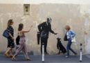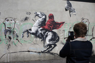 Negli ultimi giorni sui muri di Parigi sono comparsi sette nuovi graffiti attribuiti a Banksy, probabilmente lo street artist più famoso al mondo, un po’ per i messaggi critici e provocatori delle sue opere e un po’ perché dopo anni e ricerche non se ne conosce ancora l’identità. La notizia è stata data dal sito d’arte Artistikrezo: il suo direttore, Nicolas Laugero Lasserre, aveva avuto notizia di un viaggio in Francia di Banksy e ne aveva riconosciuto la mano in un murale che raffigura una ragazza mentre spruzza una tappezzeria – esposta nel 2009 nel Museo di Bristol, la città dei primi lavori di Banksy – per coprire una svastica. Questo murale si trova vicino a un ex centro per migranti al confine settentrionale della città ed è comparso il 20 giugno, la Giornata mondiale del rifugiato: secondo gli esperti Banksy avrebbe voluto criticare la politica del governo francese sull’immigrazione. Non tutti i murales parlano direttamente di migranti: uno per esempio è una reinterpretazione del famoso quadro “Napoleone che attraversa le Alpi“, dipinto nel 1801 da Jacques-Louis David.