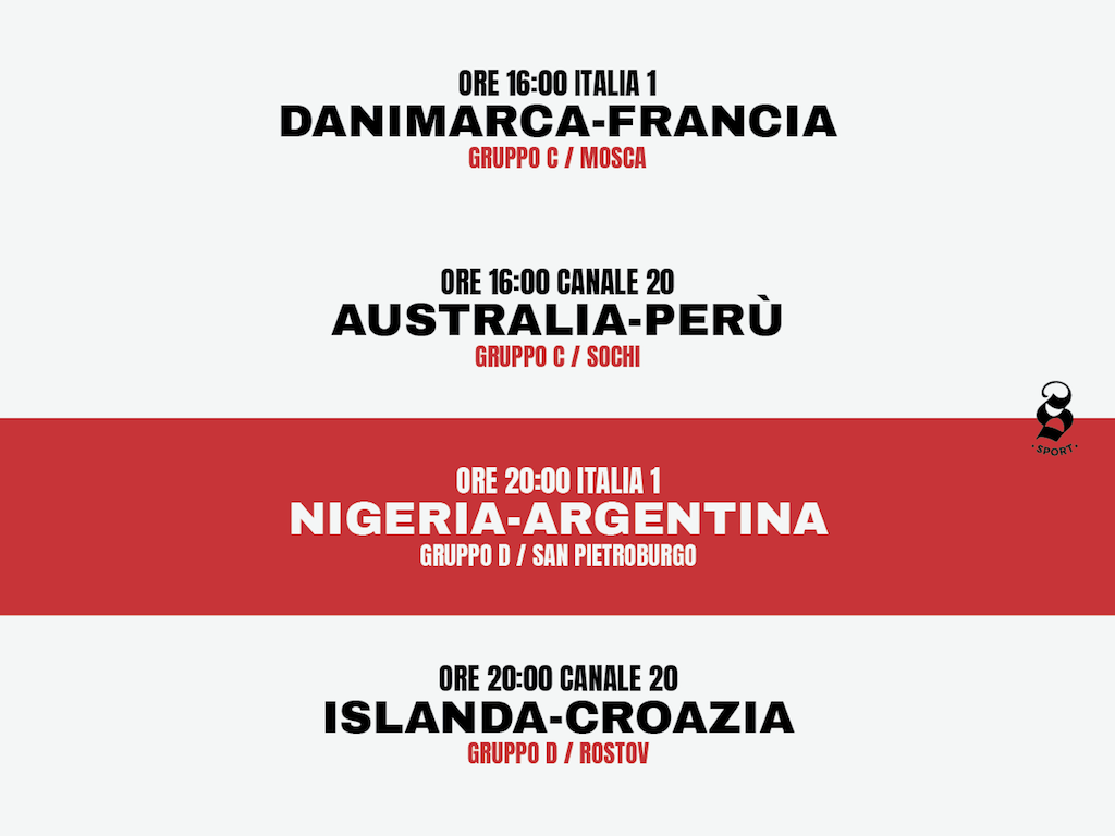 È il giorno in cui l'Argentina si gioca la permanenza in Russia, mentre Francia e Danimarca il primo posto nel loro girone