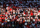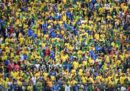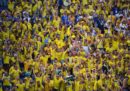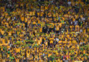 Fotografati sugli spalti, con la maglietta della squadra a cui tengono, i tifosi dei Mondiali di calcio formano una serie di pattern di umani, in cui la prima cosa che salta all’occhio è il colore della maglietta che indossano, o delle mani che alzano al cielo. Se siete molto bravi saprete distinguere i tifosi di Svezia, Brasile, Australia e Colombia dalle diverse sfumature di giallo delle loro maglie, o quelli di Giappone e Islanda per i diversi tipi di blu.