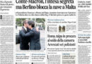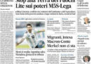 Ci sono notizie diverse in apertura sui giornali di oggi: alcuni si occupano dell’accoglienza dei migranti in Europa, con la vicenda della nave Lifeline che dovrebbe sbarcare a Malta anche se non c’è un accordo sulla destinazione finale dei profughi e la visita a Roma del presidente francese Macron per incontrare Papa Francesco e il presidente del Consiglio Conte. Avvenire e il Dubbio titolano sui dati diffusi dall’ISTAT sulla povertà in Italia, la Stampa e il Giornale aprono sulle parole di Di Maio sui dazi e su internet gratis per i più poveri, e i giornali sportivi si occupano della vittoria dell’Argentina che si qualifica così agli ottavi di finale dei Mondiali.