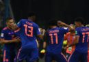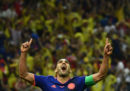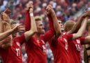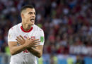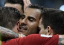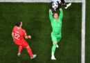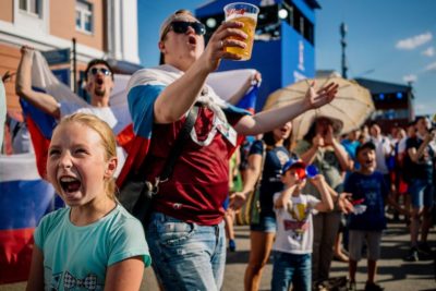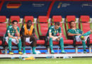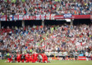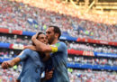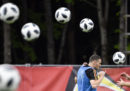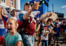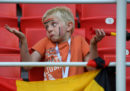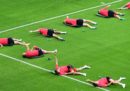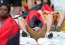 La foto che sicuramente avrete visto questa settimana è quella – molto scenografica – di Maradona durante Nigeria-Argentina: in piedi con le braccia spalancate e lo sguardo rivolto al cielo, illuminato da un raggio di luce e circondato da persone all’ombra protese verso di lui. E sempre in quell’occasione valeva la pena fotografare l’esultanza di Lionel Messi con Marcos Rojo, che ha segnato il gol nella decisiva vittoria dell’Argentina contro la Nigeria: una di quelle immagini in cui la faccia del calciatore vale tutta la foto. Poi i soliti tifosi, compresi i tristissimi tedeschi, infortuni, smalti e capriole.
