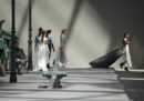La collezione di alta moda è stata allestita in una replica della capitale francese, con il lungo Senna, le panchine e le edicole verdi