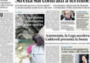 La maggior parte dei giornali di oggi titola in apertura sull’approvazione da parte del consiglio dei Ministri del decreto presentato dal ministro del Lavoro Di Maio, che contiene norme più rigide sui contratti a termine, multe per le aziende che lasciano l’Italia dopo aver ricevuto aiuti e il divieto di pubblicità per i giochi. Su molte prime pagine è presente anche la notizia e la foto del ritrovamento dei ragazzini che si erano persi in una grotta in Thailandia, mentre il Manifesto e la Verità seguono ancora le notizie sull’accoglienza dei migranti in Europa, Libero critica la “discriminazione” nei confronti degli atleti italiani bianchi dopo la vicenda della foto delle ragazze che hanno vinto la staffetta ai Giochi del Mediterraneo, e il Dubbio commenta le motivazioni della sentenza sulla strage di via D’Amelio.