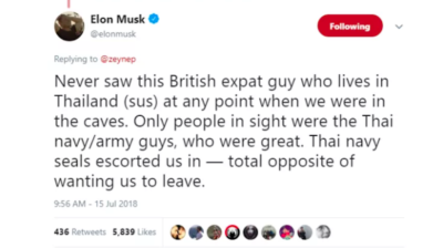 L’attivismo di Musk aveva generato qualche scetticismo e qualche accusa di volersi fare pubblicità gratuita, ma Musk era andato in Thailandia dopo essersi sentito con Dick Stanton, il capo dei sommozzatori britannici che hanno partecipato alle operazioni, che lo aveva incoraggiato ad andare avanti con lo sviluppo dei mini-sommergibili (lo ha detto lo stesso Musk rispondendo online alle critiche). Alla fine i mini-sommergibili di Musk non sono stati utilizzati: l’altra opzione – far portare i ragazzi fuori dalla grotta da alcuni sub esperti, dopo avergli fatto indossare delle maschere speciali – è stata considerata migliore, e ha funzionato. Musk è stato comunque ringraziato per aver provato a dare il suo contribuito anche se Narongsak Osotthanakorn, che ha coordinato i soccorsi, ha definito i mini-sommergibili «tecnologicamente sofisticati» ma «non pratici per la missione».