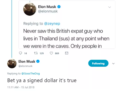 Musk ha risposto a Unsworth su Twitter, rispondendo a chi segnalava un articolo del New York Times intitolato “Cosa Musk dovrebbe imparare dai soccorsi nella grotta in Thailandia“. In alcuni tweet ora cancellati, Musk ha definito “sospetto” (ha usato l’abbreviativo inglese “sus”, che sta per “suspicious”) che Unsworth sia britannico e viva in Thailandia, ha detto di non averlo mai visto nella grotta e che le sue affermazioni sono sbagliate. Poi ha definito Unsworth un “pedo guy”, cioè un pedofilo. A un altro utente, che gli ha chiesto maggiori informazioni sull’accusa, Musk ha detto di essere pronto a scommettere che Unsworth sia un pedofilo.