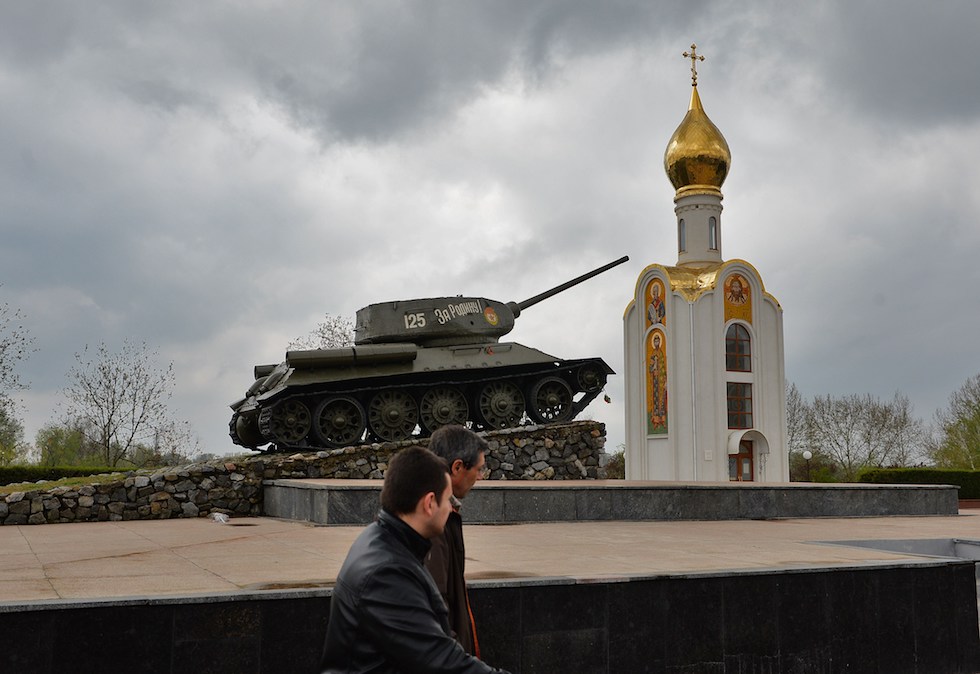 Un carro armato sovietico esposto nel centro di Tiraspol per commemorare la vittoria nella Seconda guerra mondiale contro la Germania nazista (DANIEL MIHAILESCU/AFP/Getty Images)