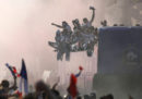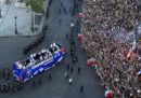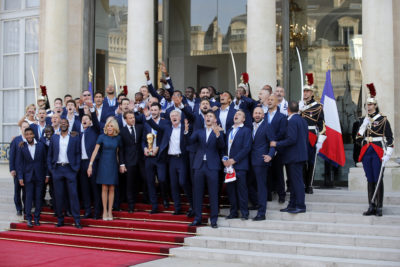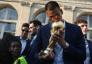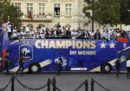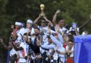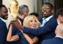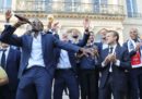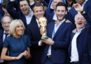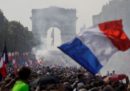 E dopo la vittoria è arrivata la festa. Lunedì la nazionale francese di calcio è tornata dalla Russia in Francia, atterrando all’aeroporto Charles de Gaulle di Parigi, dov’è stata accolta dalla ministra allo Sport Laura Flessel. Poi la squadra ha sfilato in trionfo lungo gli Champs-Élysées, trasportata su un pullman scoperto e festeggiata da centinaia di migliaia di francesi. La parata è stata accompagnata da migliaia di bandiere sventolate e dall’esibizione del Patrouille de France, l’equivalente delle italiane Frecce Tricolori, e si è conclusa davanti al palazzo dell’Eliseo a Parigi, la sede della presidenza della Repubblica, dove ad attendere la squadra c’erano il presidente Emmanuel Macron e la moglie Brigitte.