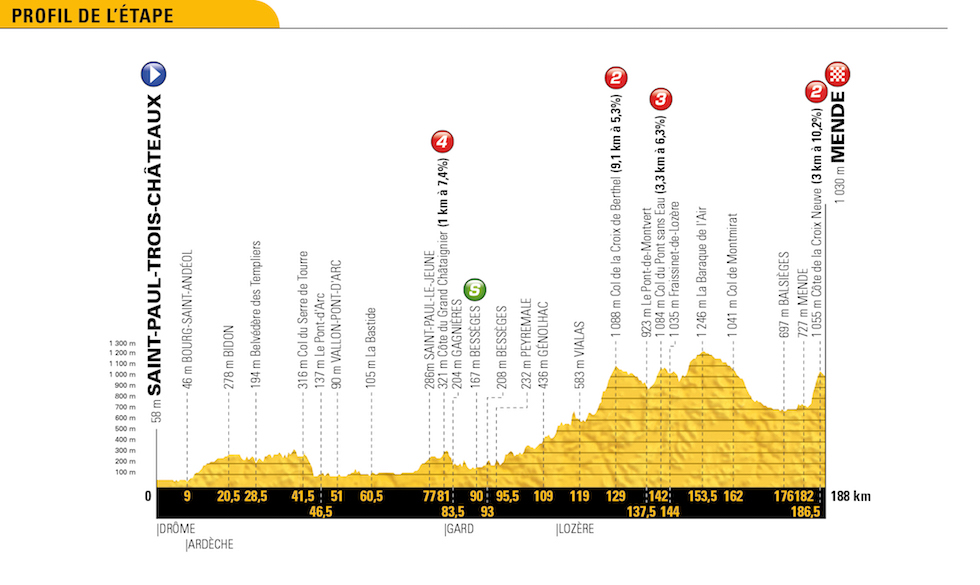 La 14ª tappa, il 21 luglio: Saint-Paul-Trois-Châteaux › Mende (188 km)